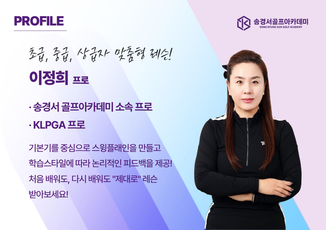 레슨 및 프로필 JLP GOLFCLUB 서현점에서 송경서골프아카데미와 함께하는 실력점검! 1:1 맞춤형, 만족스러운 고퀄리티 레슨을 선보이겠습니다. 감사합니다. ☏문의 : 031-708-6037